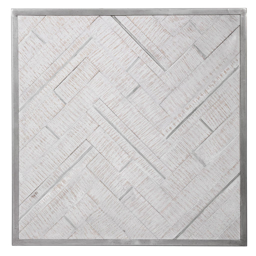 UttermostThis Wood Wall Panel Personifies Modern Coastal Style With Whitewashed Pine Wood In A Classic Herringbone Pattern Accented By Sleek Silver Bar Inse...