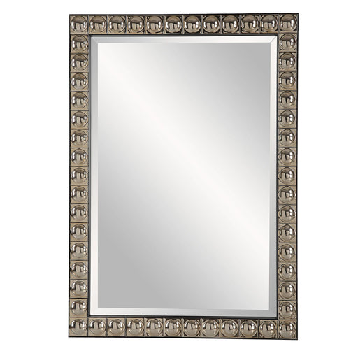 UttermostThis Unique Vanity Mirror Features Repeated Ceramic Tiles With Convexed Centers Finished In An Antiqued Silver-champagne Plating, Encased In A Blac...