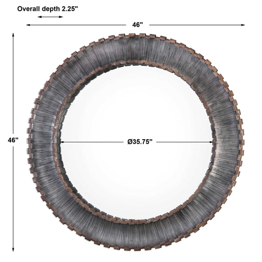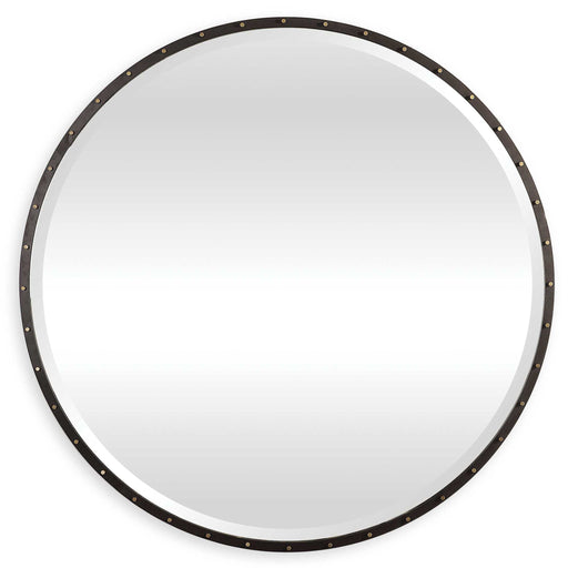 Bassett MirrorThe Bedford Wall Mirror presents a round design with a modern industrial profile, boasting a black metal-like finish accentuated by a gold brushing...