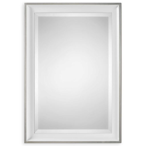UttermostSloped Profile Frame Finished In Gloss White, Accented With A Silver Leaf Outer Edge. Mirror Is Beveled And May Be Hung Horizontal Or Vertical.Prod...