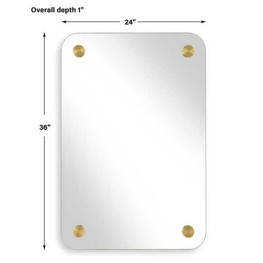 UttermostThe Hamrick Mirror Showcases A Frameless, Polished Edged, Rectangular Mirror With Softly Rounded Corners, Adorned With Four Decorative Brass Plated...
