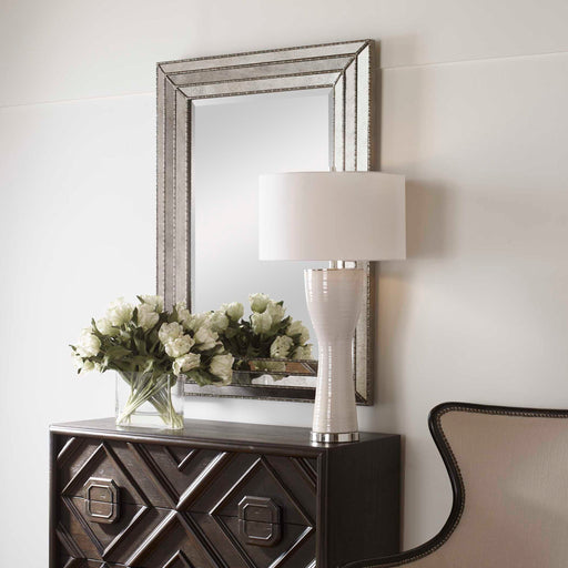 UttermostThis Mirror Features A Frame Made Of Antiqued Mirror Inlays With Burnished Silver Details. Center Mirror Features A Generous 1 1/4" Bevel. May Be H...