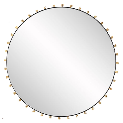 UttermostThis Modern Round Mirror Features A Iron Frame Finished In Matte Black, Adorned With Brass Plated Tapered Round Pegs Surrounding A Floating Polishe...
