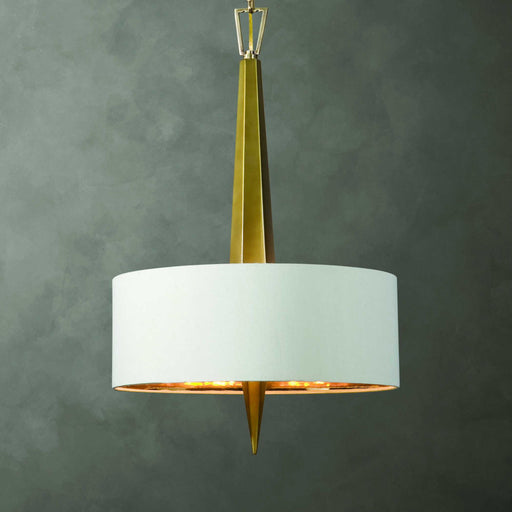 UttermostAn Elegant Chandelier With A Sleek Vertical Ceramic Center In A Warm Gold Finish Evokes An Art Deco Feeling With A Beige Linen Hardback Shade Featu...