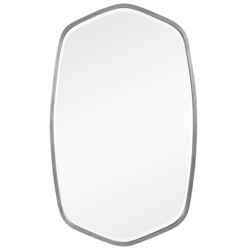 UttermostThis Hand Forged Iron Mirror Frame Features A Unique Shape With Elegant Curves, Finished In A Streamlined Satin. Mirror Has A Generous 1 1/4" Bevel...