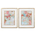 Bursting With Pastel Colors, These Abstract Prints Bring An Timeless Elegance To A Space. Light Blue, Blush, Cream, And Sea Foam Green Hues Pop Against The Glossy, White Frame Surrounding Each Print. For A Touch Of Glamour, A Gold Leaf Outer Frame And Matching Fillet Are Added. Each Print Is Placed Under Protective Glass. Artwork By Christina Long.