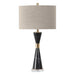 Mid-century Flair Is Added To This Design Featuring An Hourglass Shaped Base Constructed Of Solid, Black Marble And Is Accented With Stainless Steel Details Finished In A Plated Gold And A Thick Crystal Foot. The Oval Hardback Drum Shade Is A Beige Linen Fabric With Vertical Slubbing.