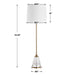 The Alistair Buffet Lamp Features A Heavily Seeded Glass Base Paired With Plated Antique Brass Details That Bring Elegance To Any Space. The Slightly Tapered Hardback Shade Is Covered In White Linen Fabric That Complements The Piece.