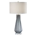 Unpolished, Charcoal Gray Glass, Featuring A Subtle Twist Shape, Accented With Brushed Nickel Highlights And Crystal Details. The Round Hardback Drum Shade Is A Light Beige Linen Fabric With Natural Slubbing And Matching Double Trim.