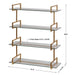 Add Elegance As Well As Functionality To Your Room With This Iron Wall Shelf Featuring An Antiqued, Gold Leaf Finish. Durable, 1/4" Thick Floating Tempered Glass Shelves.