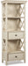 | Details | Made of veneers, wood and engineered wood, Textured antiqued white finish, Light distressing, 3 shelves, 2 drawers, Back panel has replicated wood veneer surface, Latticed sides, Expert assembly recommended | |