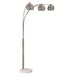 What's even better than a chic and versatile floor lamp curved to reach hard-to-light spaces? How about the bright idea of adding two more bulbs? The brushed nickel iron stem of the Collette is cleverly divided into three separate arms to add a wider range of light for reading or ambiance. With a sturdy, yet elegant gray marble base and three round iron shades lined in crisp white, the unique and stylish Collette is a favorite for any space.