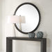 This Large Round Mirror Is Crafted From Solid Iron And Elegantly Finished In Satin Black. Its Commanding Presence Is Accentuated By Thick Rings Surrounding An Inner Band, Adding A Touch Of Contemporary Sophistication To Any Space.
