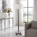 Inspired By Classic Metalwork Designs, This Lamp Features A Tapered Base And An Industrial Inspired Foot Finished In Aged With Subtle Rust Distressing. The Hardback Drum Shade Is Covered In A Linen Fabric.