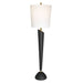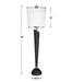 This Futuristic Buffet Lamp Design Is Made Of Cast Black Man-made Stone With A Noticeable Pitted Surface, Paired With Antique Brass Plated Details. The White Linen Fabric Shade Is Reversed Tapered To Follow The Contour Of The Lamp Base For A Unique Display.