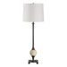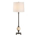 The Dempsey Buffet Lamp Features A Sleek, Sophisticated Base With A Complementary Foot, Elevated By The Addition Of A Striking Travertine Orb. The Slightly Tapered Round Hardback Shade Is Covered In A Casual Linen Fabric.