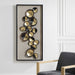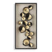 An Artful, Layered Assortment Of Serrated Edge Iron Discs Accented With Gold Leaf Centers. The Artwork Is Displayed Over A Light Oatmeal Linen Backing In A Satin Black Finished Shadow Box Frame Under Glass. May Be Hung Horizontal Or Vertical.