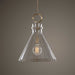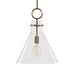 Playful Funnel Shaped Clear Glass Bestows An Almost Whimsical Touch To The Clean Design Of This 1 Lt. Pendant With Aged Brass Strengthening The Modern Line. 1-100 Watt Max, Edison Socket. Bulb Not Included. Supplied With 15' Wire, 3-12" Stems And 1-6" Stem For Adjustable Installation.