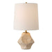 This Accent Lamp Features A Scooped Out Travertine Base Paired With Plated Antique Brass Accents. The Slightly Tapered Round Hardback Shade Is Covered In White Linen Fabric.
