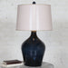 Lightly Hammered, Midnight Blue Glass Accented With Polished Nickel Plated Details. The Round, Tapered, Hardback Shade Is A Beige Linen Fabric With Light Slubbing.