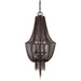 Draped Jewelry Chain Finished In A Dark Oil Rubbed Bronze With Gold & Copper Highlights. 3-60 Watt Max, Candelabra Sockets. Bulbs Not Included. Supplied With 15' Wire & 7' Chain For Adjustable Installation.