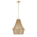 Natural Beige Rope Is Knotted And Tied By Hand In A Decorative Pattern Over A Metal Frame Dressed Up With A Brushed Gold Finish. 4-60 Watt Max Candelabra Sockets. Bulbs Not Included. Supplied With 15' Wire, 5' Chain For Adjustable Installation.