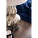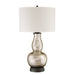 A statuesque glass base gives our Madeline table lamp a look as distinctive as it is dramatic. Its countless curves boast a painted silver finish, reminiscent of antique mercury glass. A round shade in crisp white linen adds an airy touch while reflecting the warm glow of Madeline’s elegant metallic tones.