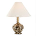 This Table Lamp Showcases A Captivating Base Crafted From Art Glass With A Mesmerizing Smoky, Dark Brown Pattern. The Intricate Details And Warm Brass Plated Accents Create A Truly Unique And Eye-catching Piece. The Coolie Style Shade Is Covered In A White Linen Fabric. Due To The Natural Hand Crafted Art Glass Each Piece Will Vary.