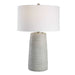 Handcrafted In An Artisanal Style, This Table Lamp Is Formed From Ceramic In Neutral Off-white And Gray Tones With Carved Ring Detailing. Steel Accents Are Finished In A Complementary Brushed Nickel. The Hardback Drum Shade Is Covered In A White Linen Fabric.