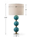 Elevate Your Space With Our Captivating Table Lamp Featuring Stacked Ceramic Spheres Adorned In A Crackled Turquoise Blue Glaze. Enhanced With Plated Antique Brass Details And A Thick Crystal Foot, It Exudes Timeless Elegance And Artistic Charm. The Round Hardback Drum Shade Is A Crisp White Linen Fabric.