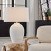 This Ceramic Table Lamp Features A Timeless Urn Shape Finished In A Chalk White Glaze With Updated Hand Carved Texture And Subtle Distressing, Accented With Brushed Nickel Details. The Slightly Tapered Large Round Shade Is Made In A Casual White Linen Fabric.