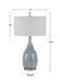 Showcasing A Refined Coastal Style, This Table Lamp Has A Ceramic Base Finished In An Aqua And Teal Crackle Glaze With Touches Of Rust Brown. Polished Nickel And Crystal Accents Highlight The Design. The Lamp Is Paired With A Round Hardback Drum Shade In A White Linen Fabric.