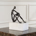 This Sculpture Captures The Essence Of Tranquility As It Depicts A Figure In A Relaxed Seated Position, Engrossed In The Simple Pleasure Of Reading. The Cast Iron Figure Is Finished In Dark Brown, Enriched With Bronze Highlights, And Sits Atop A White Marble Base. This Visually Stunning Piece Effortlessly Complements Any Space.