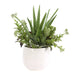 A Fresh And Textural Mix Of Arid Succulents, Including Aloe, Crassula, Sedum And Echeveria, Nestled In A Mottled Gloss White Ceramic Planter.