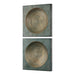 Aged Iron Squares Featuring A Ribbed Concave Center In Antique Gold, Washed With A Heavy Patina Glaze Revealing Ivory Undertones.