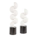 These Contemporary Sculptures Feature A Dynamic Stack Of Hemispheres, Perfectly Balanced On Sleek Dark Bronze Cylindrical Bases. The Minimalist Design And Smooth White Finish Create A Striking Visual Contrast, Making Them An Ideal Statement Piece For Modern Interiors. Sizes: S-5x14x5, L-5x18x5