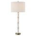 Crafted From Polished Alabaster Meticulously Sculpted Into The Graceful Form Of A Bamboo Shoot, This Table Lamp Exudes Sophistication And Tranquility. Paired With Plated Brass Accents, It Seamlessly Blends Organic Charm With Luxurious Refinement. The Round Hardback Drum Shade Is A Crisp White Linen Fabric.