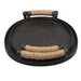 This Set Of Iron Trays Is Finished In A Rustic Oxidized Bronze Finish With Natural Rope Wrapped Handles. Sizes: S-19x3x13, L-22x3x15