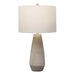 Simple Yet Stylish, This Ceramic Table Lamp Is Finished In A Crackled Taupe-gray Glaze With Noticeable Distressed Details And Antique Brushed Brass Accents. The Round Hardback Drum Shade Is A White Linen Fabric.
