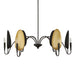 The Intriguing Matte Black Textured Finish In Combination With The Oval Shade Interior Of A Texture Matte Gold Finish Draws The Eye On This 6 Lt. Transitional Oversized Chandelier. 6-60 Watt Max Candelabra Sockets. Bulbs Not Included. Supplied With 20' Wire, 3-12" Stems And 1-6" Stem For Adjustable Installation.