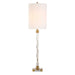 Step Back In Time With This Mid-century Table Lamp. The Meticulous Craftsmanship Is Evident In Its Petite Crystal Column, Intricately Detailed With An Embossed Pattern And Complemented By Antique Brass Plated Accents. The Tall Round Hardback Shade Is Covered In A Crisp White Linen.