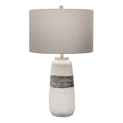 UttermostShowcasing A Rustic Casual Look, This Ceramic Table Lamp Features An Off-white Crackle Glaze With Distressed Rust Brown Details And Noticeable Ribb...