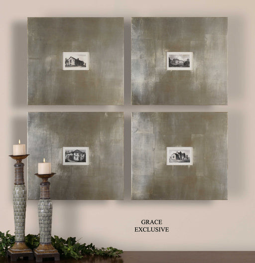 Historical Buildings - Framed Art (Set of 4) - Pearl Silver