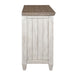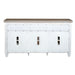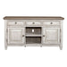 Accent your living room with the perfect vintage design, using this unique and stylish 56" tile tv console. Crafted with rubberwood solids and cathedral white oak veneers, this piece accommodates most 60" TVs and features an antique white finish with tobacco tops, three drawers, planked tops, full extension drawer glides for easy access to storage, two reversable/interchangeable decorative door panels, making this piece customizable, and is accented by timeless antiqued brass knob hardware. With today's modern technology in mind, users can enjoy the convenience of the open compartment areas and wire management provisions to hide those pesky wires from your electronics or gaming equipment.