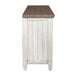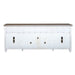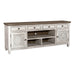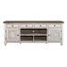 Accent your living room with the perfect vintage design, using this unique and stylish 66" tile tv console. Crafted of rubberwood solids and cathedral white oak veneers, this piece accommodates most 80" TVs and features an antique white finish with tobacco tops, four drawers, full extension drawer glides for easy access to storage, planked tops, two reversable/interchangeable decorative door panels, making this piece customizable, and is accented by timeless antiqued brass knob hardware. With today's modern technology in mind, users can enjoy the convenience of the open compartment areas and wire management provisions to hide those pesky wires from your electronics or gaming equipment.