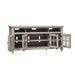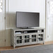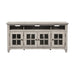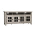 Accent your living room with the perfect vintage design, using this unique and stylish 66" tv stand. Crafted with rubberwood solids and cathedral white oak veneers, this piece can accommodate most 72" TVs and features an antique white finish, adjustable shelving, wood framed drawer fronts, raised panels, accented by timeless antiqued brass knob hardware, and has squared pilasters that seamlessly flow into heavily tapered feet. Keep it casual with the simple wood framed doors or step it up with the interchangeable decorative tile look. With today's modern technology in mind, users can enjoy the convenience of the open compartment areas and wire management provisions to hide those pesky wires from your DVD player or gaming console of choice.