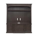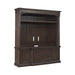 Make your home impressive with the Paradise Valley entertainment center. Crafted with Rubberwood solids and Split Heart White Oak veneers, this set features a Saddle Brown finish. The console showcases breakfront styling and has two full extension drawers and two doors with wood framed drawer and door fronts that are accented with bead molding and Antique Pewter drop bail and knob hardware. One adjustable shelf is located behind each door. The hutch features a heavy top crown, a planked back panel, and an adjustable/removable shelf. Touch LED lighting will illuminate your display. Wire management provisions are added to conceal wiring. Chamfered pilasters soften the entertainment center and flow to a heavy plinth base. Paradise Valley captures grand opulence with comfortable rustic styling.