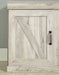 Express your modern farmhouse style with this entertainment center with fireplace. Its wispy white finish over replicated oak grain is a delightful change from the ordinary. The clean-lined, classic styling with barn door inspiration provides a country-chic aesthetic that’s a breath of fresh air. What really turns up the heat: an electric infrared fireplace insert with faux firebrick surround that operates with or without infrared heat. With the touch of a button, adjust the temperature and the flame brightness, and set the timer for long-lasting enjoyment.