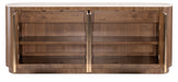 A stunning mix of form and function, the Eleana Credenza features Light Caramel walnut veneers, honed marble top in soft white and beige tones, and Sunlit Bronze hardware. Behind the four soft-close doors, you’ll find adjustable shelving, self-closing drawers, and a silverware tray for organized storage. Its rounded sides and plinth base complete the luxurious design, making it perfect for dining rooms or living spaces.