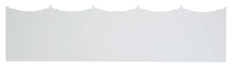 A soft modern silhouette with classical inspiration, the Corinth Entertainment Console has a white plaster finish with light blue interior, bracket feet and a dimensional front with columns used to open the doors. Behind the left and right doors are two adjustable shelves, and one drawer behind the pair of center doors. The top of the drawer creates a fixed shelf. Accommodating up to a 75-inch TV, the console has a ventilated back panel and a power supply.